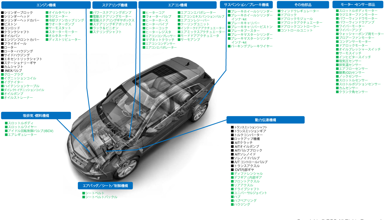 エンジン・ミッション・電装品など幅広くカバー